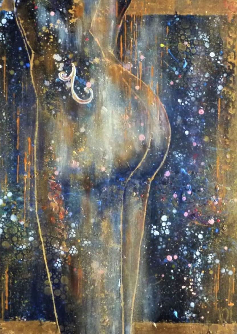 Artiste professionnelle, livraison avec facture et certificat d'authenticité. A mi-chemin entre le figuratif et l'abstrait, mon travail s'attache à faire pointer des ressentis et des émotions à travers des antagonismes. En effet mes thèmes de prédilection sont les contrastes entre des cohabitations un peu contradictoires, tels la ville et la nature, la rondeur des vagues et des nuages, retrouvée dans des lignes droites abstraites, ou l'accent mis sur un regard plus encore que sur un portrait. Sur toile ou autre support, je peins en acrylique, avec souvent des ajouts de matières, et l'on retrouve fréquemment l'or, symbole d'éclat, sous différentes formes, peinture, pigments purs, feuille… Je peins comme je suis, c'est à dire sans prétention, avec mes failles et mes points forts, mais j'avoue mettre un point d'honneur à réaliser des œuvres très personnelles, dans un style qu'on ne retrouve pas ailleurs.